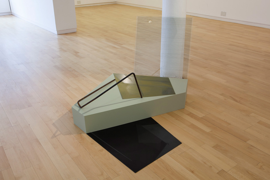 Glass, rebar, etched steel plates, wood